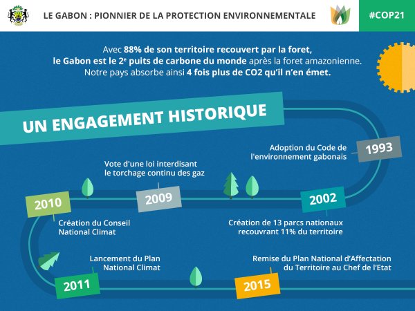 Le Gabon, 2e poumon vert de la planète, présente sa contribution à la COP21, la première contribution d'un pays africain, saluée dans le monde.