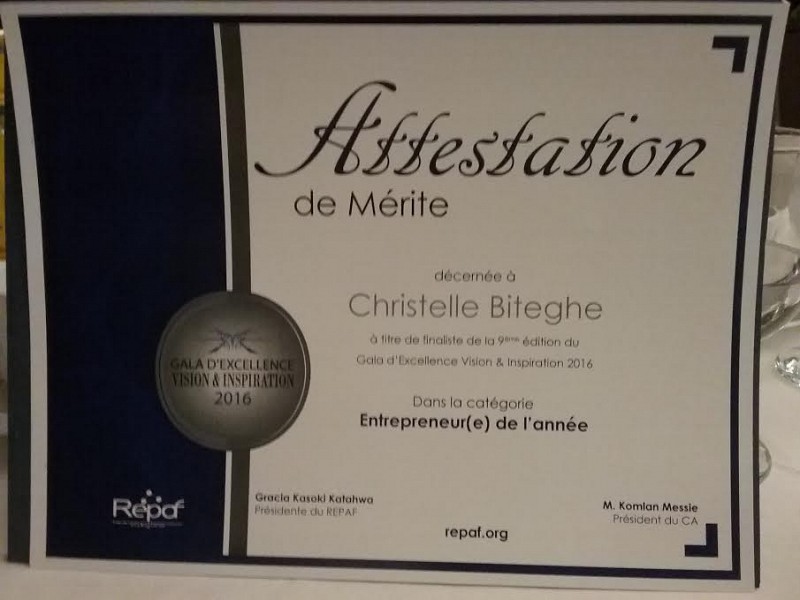 Pour cette 9e édition, la Gabonaise Christelle BITEGHE était nominée dans la plus haute catégorie : Entrepreneur de l'année, honorant l'Entrepreneur qui se démarque par sa vision, son succès et l’impact que cela a sur sa communauté et la société en général.