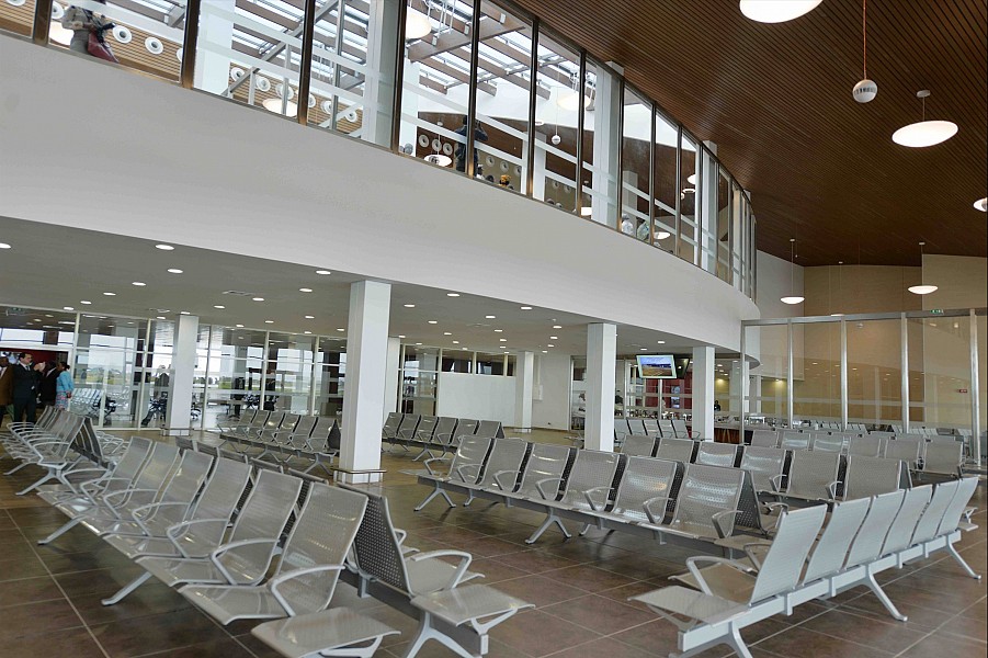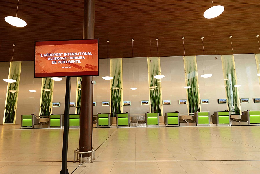 Aux côtés du président du Conseil d’administration de Total Gabon, directeur Afrique de la branche exploration-production du groupe Total, Guy Maurice, et du Ministre des Transports, Ernest Mpouho Epigat, le Chef de l’Etat a parcouru les installations édifiées sous la maîtrise d’ouvrage du groupe pétrolier français : aérogare de 9000 m², 13 comptoirs d’enregistrement, 2 salles d’embarquement, 800 m² pour la livraison bagages, restaurant accessible depuis l’extérieur, pavillon présidentiel. Le tout pour 73,7 milliards de FCFA, couverts par Total au titre de l’impôt sur les bénéfices via la Provision pour investissements diversifié (PID) et la Provision pour investissements dans les hydrocarbures (PIH).